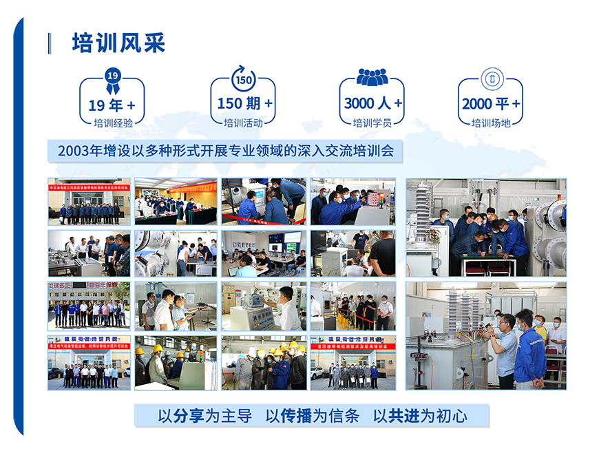2003年增設(shè)以多種形式開展專業(yè)領(lǐng)域的深入交流培訓(xùn)會。自舉辦變電站帶電檢測人員培訓(xùn)班以來,至今已舉辦近150期,先后近3000人到培訓(xùn)基地參加培訓(xùn)學(xué)習(xí)。