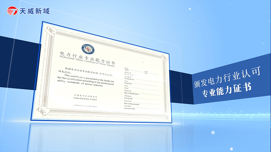 2021年9月經(jīng)中國電力企業(yè)聯(lián)合會認(rèn)證,天威新域建成電力行業(yè)變電站帶電檢測人員評價基地。在我司接受培訓(xùn)學(xué)員,經(jīng)過考核,成績合格者,頒發(fā)電力行業(yè)認(rèn)可專業(yè)能力證書。